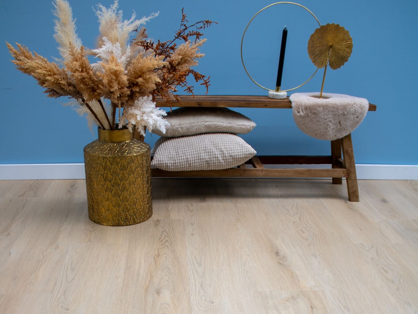 Kies je voor de Java Plak, dan kies je voor de charme van een echte houten vloer, verpakt in modern en waterbestendig PVC. De realistische details, variaties in de tekening en het tijdloze plankontwerp zorgen voor een rustig fundament onder jouw inzetbare inrichting. Hierdoor is de vloer veelzijdig te combineren met zowel strakke als meer landelijke meubelen. De gebalanceerde, warme neutrale tonen bieden verrassend veel combinatiemogelijkheden. Als dryback plakvloer is hij de perfecte keuze in combinatie met vloerverwarming en biedt hij de meest strakke, drempelloze afwerking door het hele huis – klaar voor onbezorgd woonplezier in elke ruimte.