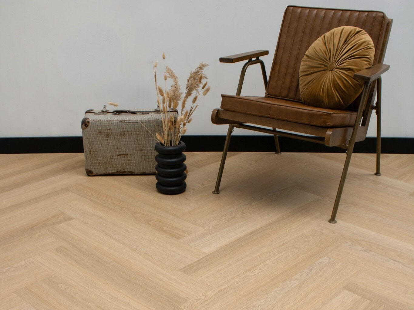 Kies je voor de Mississippi Visgraat Plak, dan kies je voor de charme van een echte houten vloer, verpakt in modern en waterbestendig PVC. Dankzij het klassieke visgraatpatroon krijgt jouw interieur direct een speels, maar tegelijkertijd zeer luxueus karakter. Het patroon trekt de aandacht zonder overheersend te zijn en sluit verrassend gemakkelijk aan bij nagenoeg elke inrichtingstijl. De gebalanceerde, warme neutrale tonen bieden verrassend veel combinatiemogelijkheden. Als dryback plakvloer is hij de perfecte keuze in combinatie met vloerverwarming en biedt hij de meest strakke, drempelloze afwerking door het hele huis – klaar voor onbezorgd woonplezier in elke ruimte.