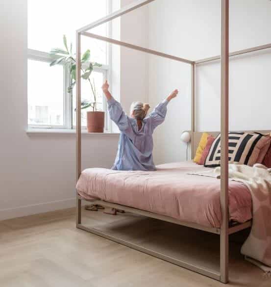 Zoek je een vloer die in meerdere ruimtes werkt? SDS 57820 – PVC Klik Visgraat XL is toepasbaar in onder andere de woonkamer, keuken, slaapkamer en zelfs de badkamer. De XL stroken van 73 × 14,6 cm geven het visgraatpatroon extra rust en een ruimtelijk effect. Daarbij is de vloer geschikt voor vloerverwarming en -koeling voor comfortabel wonen, het hele jaar door.
