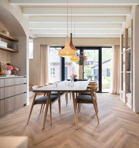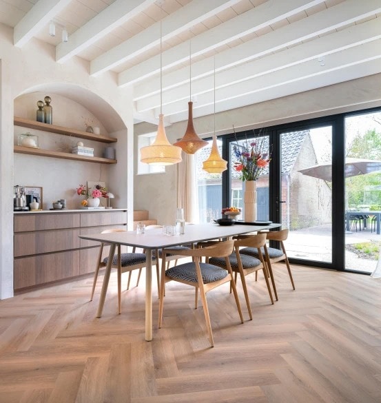 Zoek je een vloer die in meerdere ruimtes werkt? SDS 77824  – PVC Plak Visgraat XL is toepasbaar in onder andere de woonkamer, keuken, slaapkamer en zelfs de badkamer. De XL stroken van 73 × 14,6 cm geven het visgraatpatroon extra rust en een ruimtelijk effect. Daarbij is de vloer geschikt voor vloerverwarming en -koeling voor comfortabel wonen, het hele jaar door.