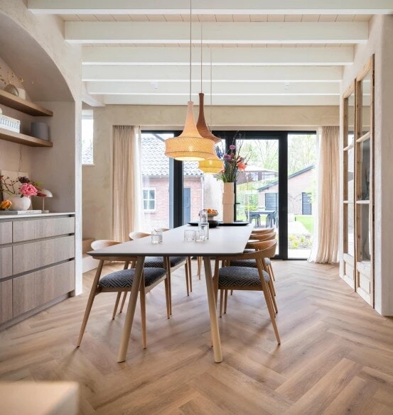 Zoek je een vloer die in meerdere ruimtes werkt? SDS 77825  – PVC Plak Visgraat XL is toepasbaar in onder andere de woonkamer, keuken, slaapkamer en zelfs de badkamer. De XL stroken van 73 × 14,6 cm geven het visgraatpatroon extra rust en een ruimtelijk effect. Daarbij is de vloer geschikt voor vloerverwarming en -koeling voor comfortabel wonen, het hele jaar door.